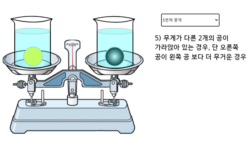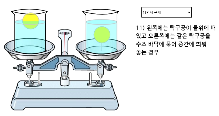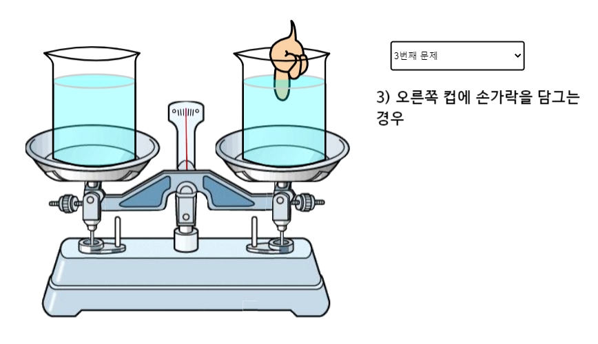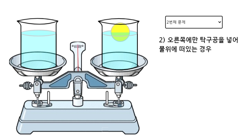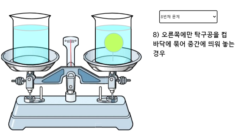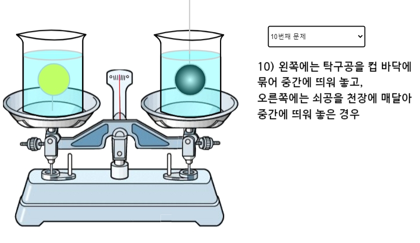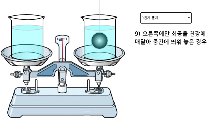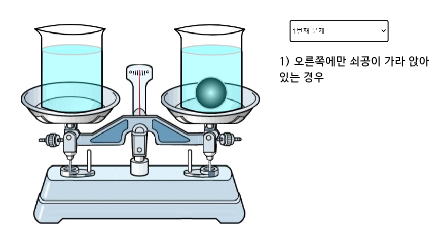가상실험 : 아래 윗접시 저울 부력 문제 링크를 보내 주면, 비대면 수업이나, 스마트 수업에서도 활용할 수 있다.