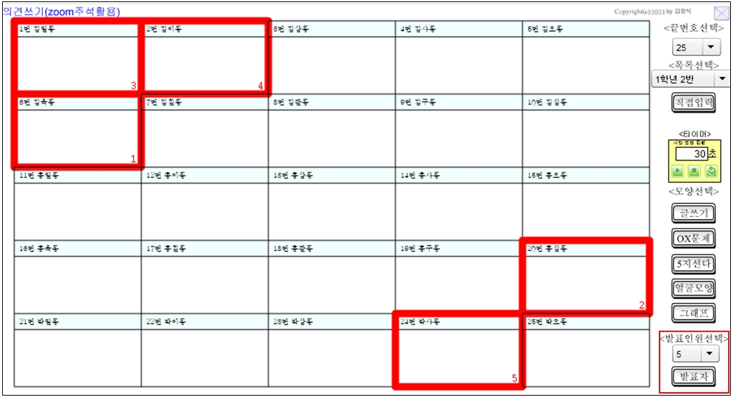 발표 순서가 우측아래 빨간색으로 표시 되기 때문에, 여러명을 뽑아도 순서대로 발표 시킬 수 있다.
