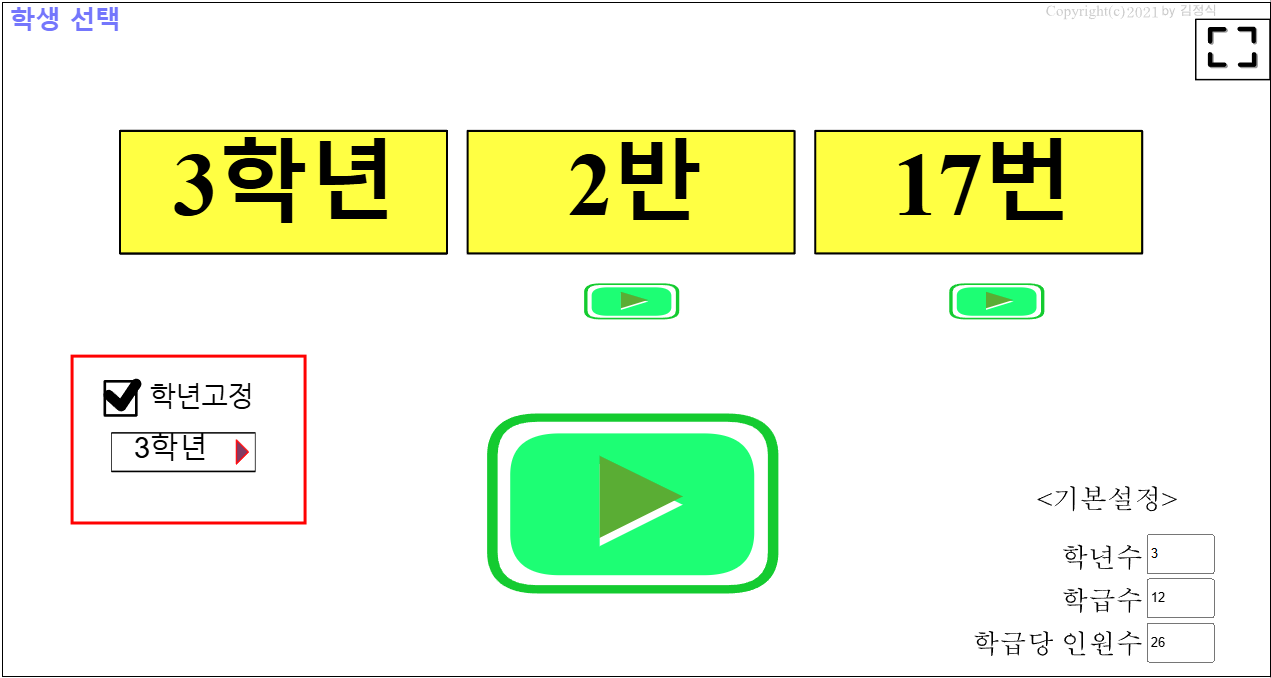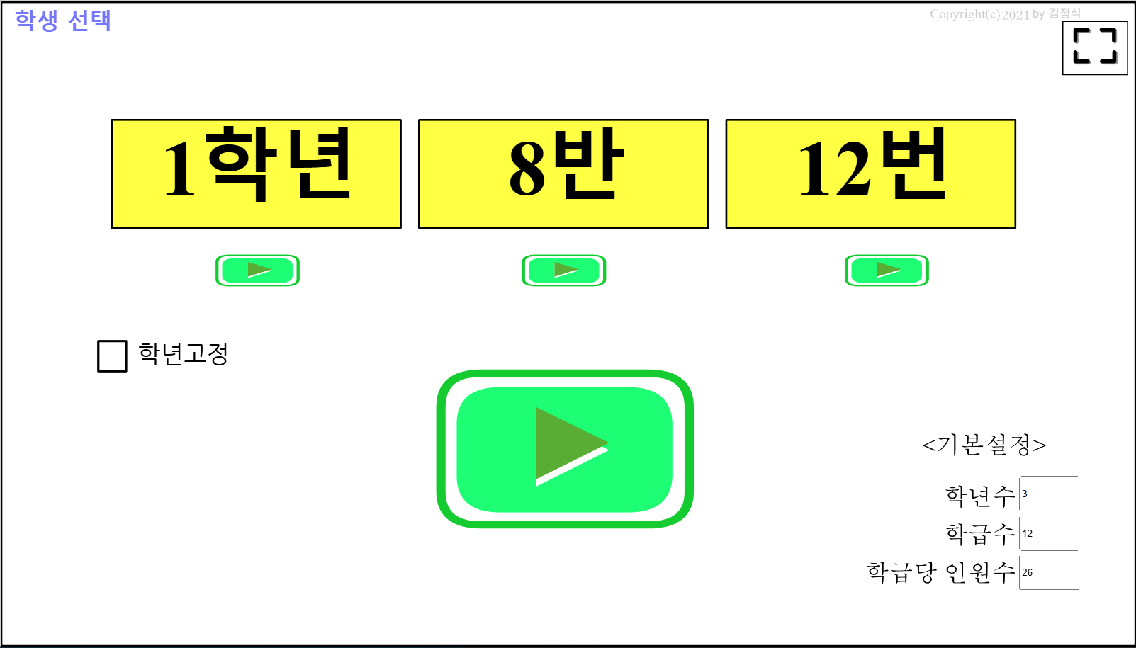또다른 사용방법은 앞에 학년을 선정하고, 반을 선정하고, 번호를 선정하는 순으로, 1개씩 선정하면서 진행할 수도 있다.