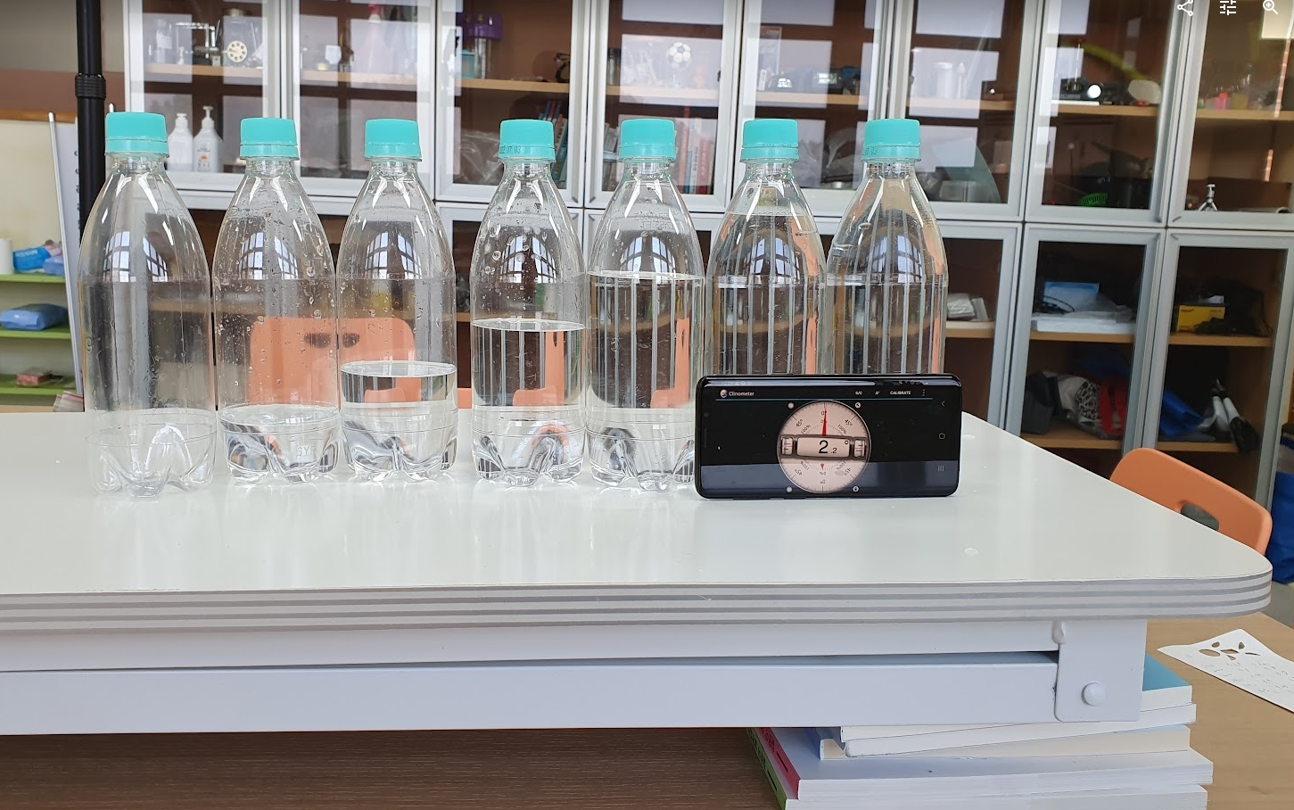 그럼 본인들이 측정한 그래프를 이용해서 병에 원하는 만큼의 물을 채워 넣고 연습없이 바로 미션에 도전하면 된다.