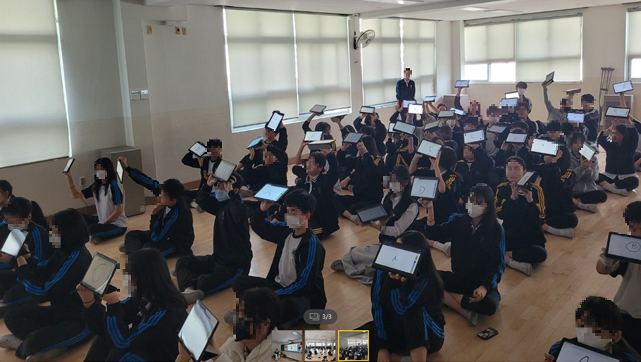 선생님이 문제를 내면, 학생들이 정답이나 관련내용을 적어서 선생님을 향해 들어 주면 된다.