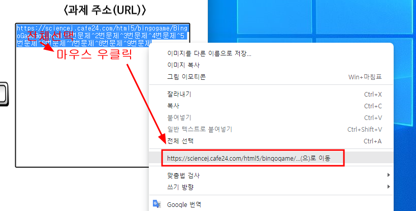 미리 주소를 만들어 두었다가 수업시간에 바로 사용하면 더 편리하다. 학습지 한쪽 구석에 주소를 미리 넣어 놓을 수도 있다.