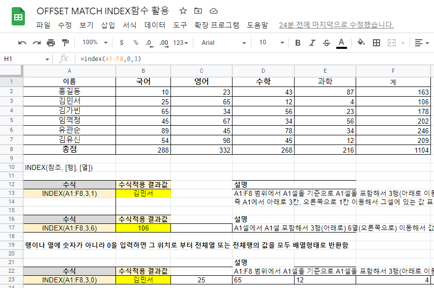 교사가 알아두면 좋은 구글스프레드 시트 함수들(INDEX, MATCH... )
