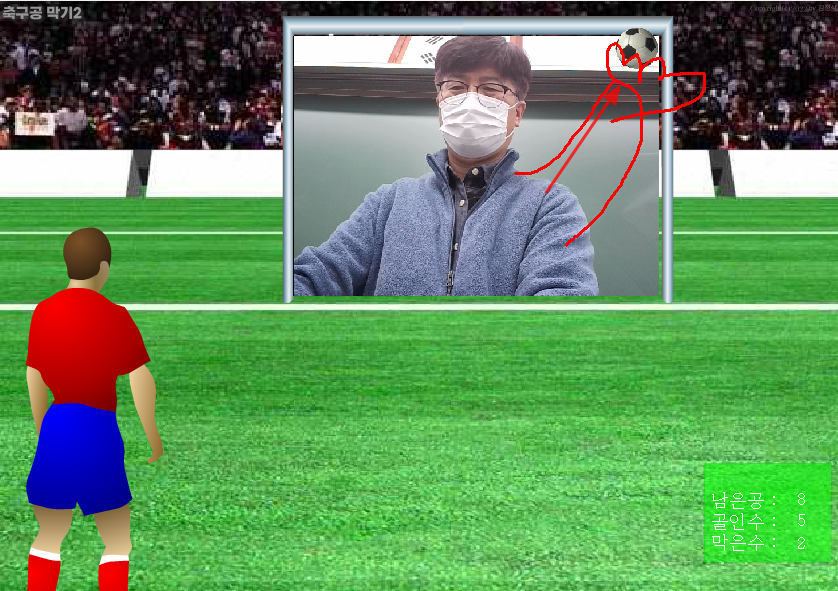 축구공 막기 게임 – 웹캠 이용 - 몸으로 공 막는 게임