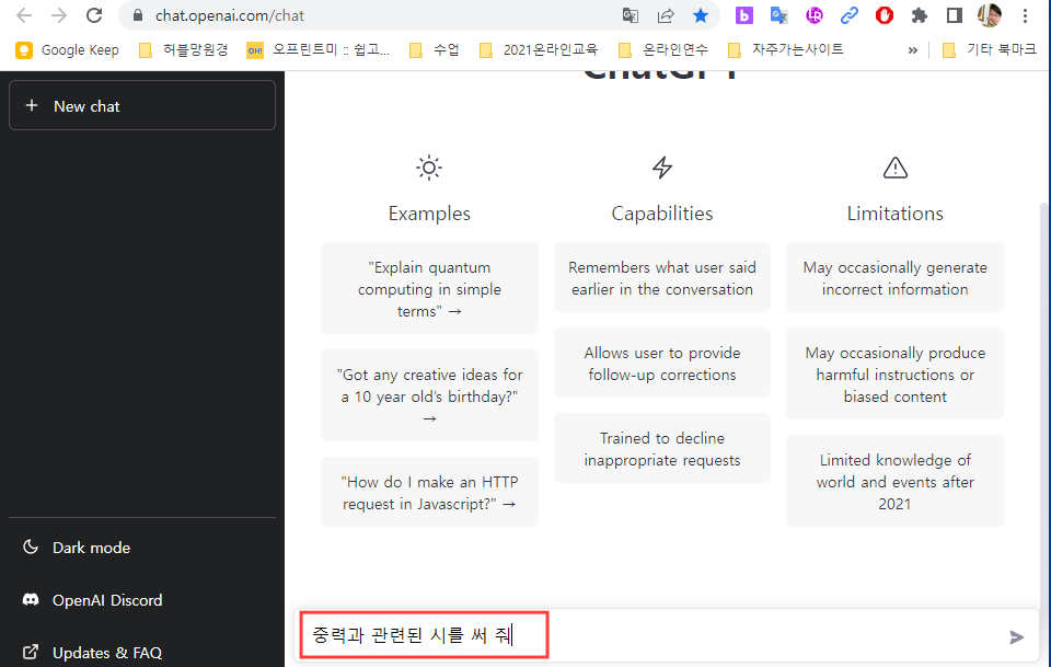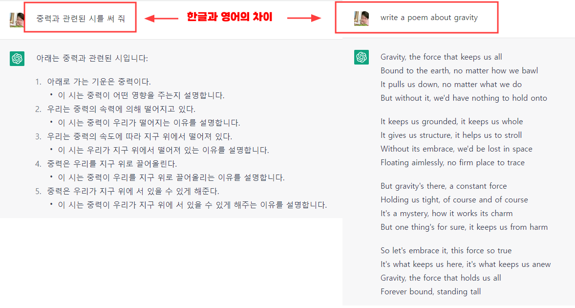 중력과 관련된 시도 쓰게 해 봤는데, 너무 잘 쓴다.