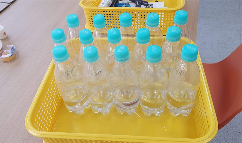 모둠별로 생수병을 가지고 가서 20분간 연습할 시간을 주었다.