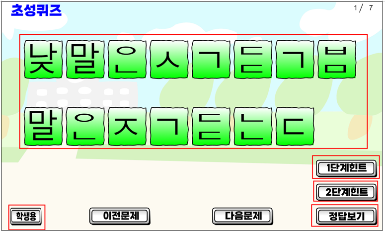 뒷부분은 예전 컴퓨터용 초성퀴즈 만드는 방법이라 여기에서는 필요가 없다.