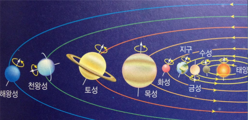 <지구와 태양과 달과 행성들의 자전과 공전 방향> 서->동