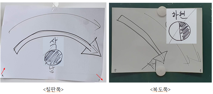 (달모양은 처음부처 그려주지 않는다. 달의 위상변화 수업할 때 추가로 그려준다. 선생님은 너희들의 태양, 나만 바라봐.)