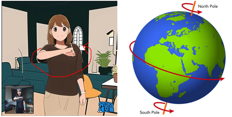 <지구 자전과 공전 방향> 서->동