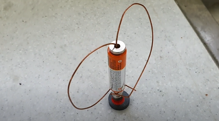 구리선만 있으면 바로 만들 수 있다. 네오디움 자석에 자석에 극을 표시해 주어야 자기력 방향을 알 수 있다.