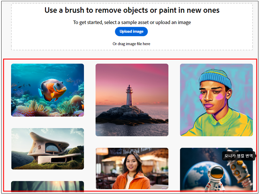 포토샵을 만든 아도비 사이트에서 제공하는 인공지능 이용하여 사진 편집하는 사이트이다.