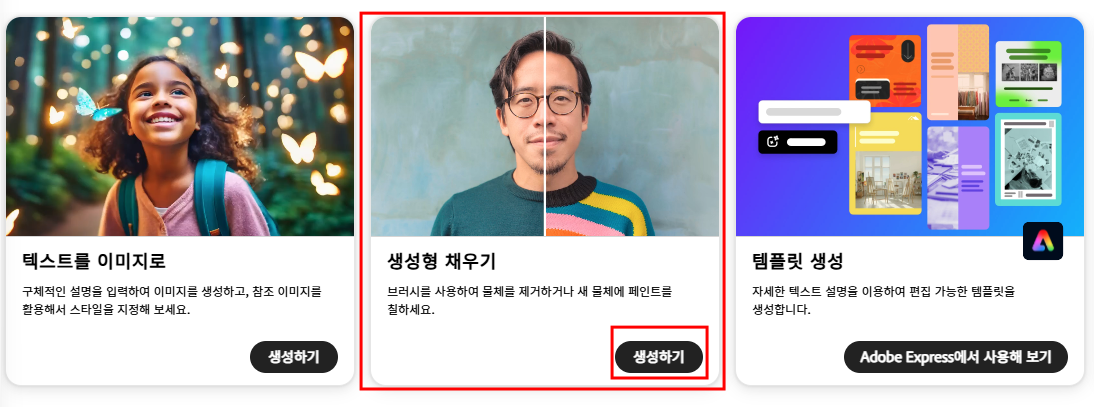 <홈으로 접속한 경우 생성형 채우기 메뉴를 선택하고 들어간다>