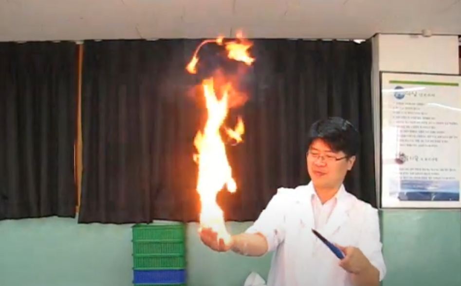 학생들이 보여달라고 떼를 쓸 때 까기 기다렸다가 실험을 보여 준다.