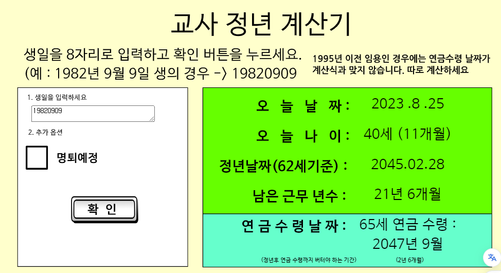 교사 정년 날짜 연금개시 날짜 계산기 및 만나이 확인