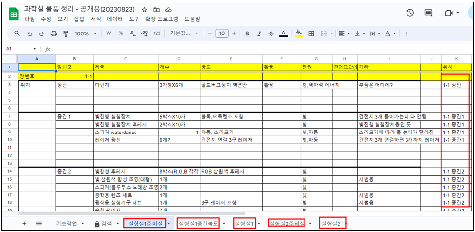 과학실 물품 정리 - 테스트용(20230823)