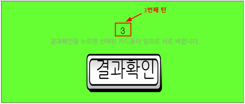 3. 4명의 학생이 모두 버릴 카드를 선택하면 결과확인 창이 나온다. 그럼 결과확인을 누른다.
