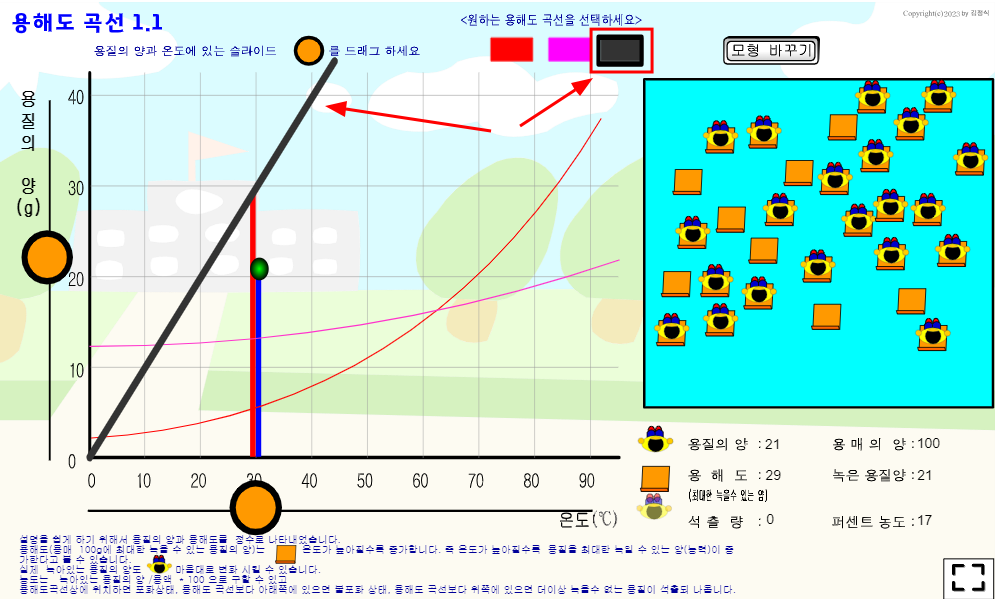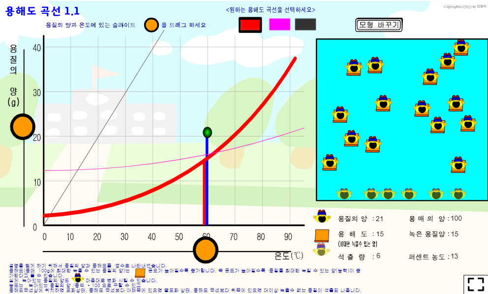 용해도 곡선 가상 실험 프로그램(수업설명팁 포함)