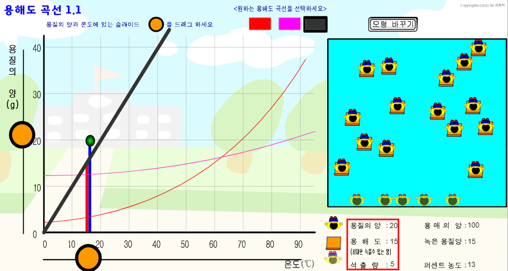 기존에 만들었던 컴퓨터용 용해도 곡선 가상실험을 웹용으로 다시 만들었다.
