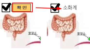 1. 처음 시작하면 기관계 이름이 다 가려져 나온다. 확인 버튼을 눌러 하나씩 열어가며 명칭을 확인해 보자.