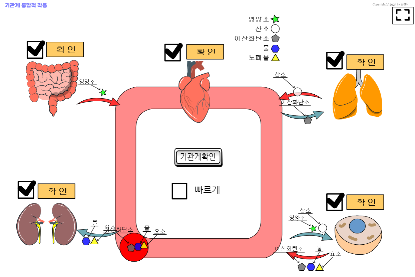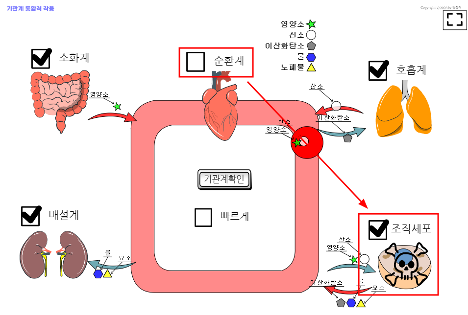 기관계(소화계,순환계,호흡계,배설계) 통합적 작용 가상실험