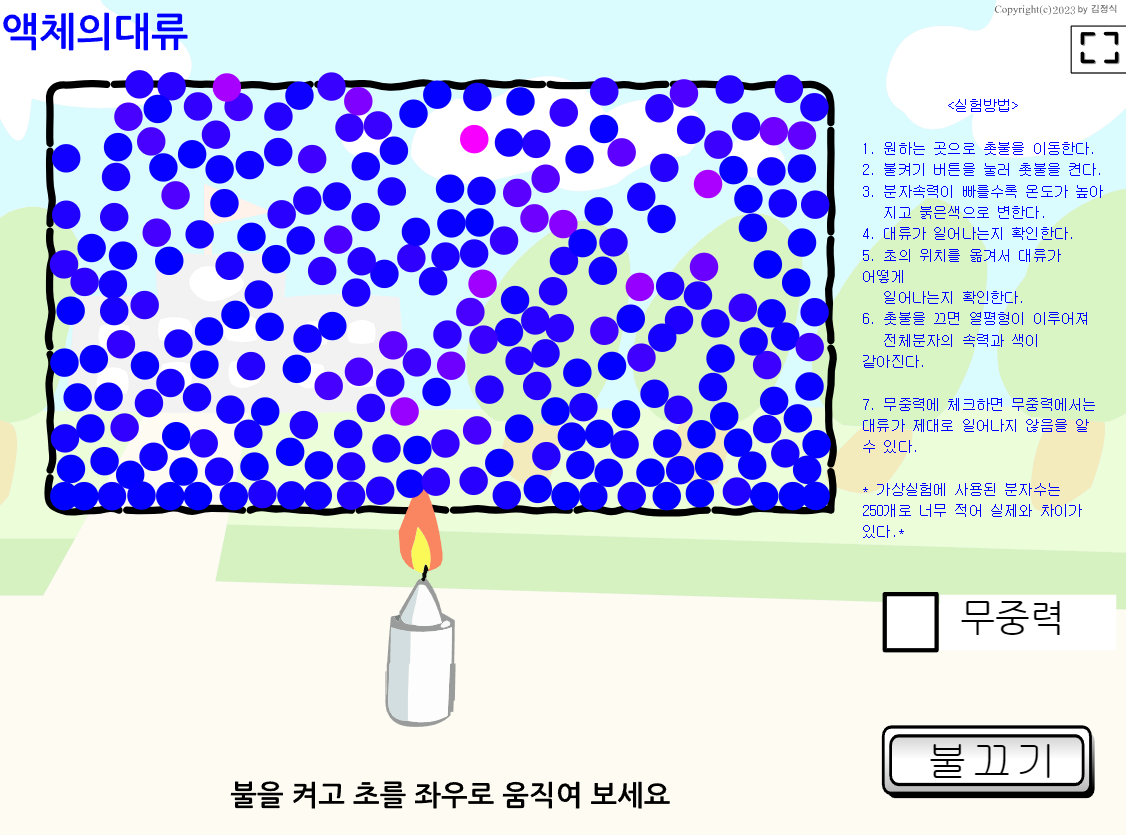 열전달 방법 중 액체의 대류에 대한 가상실험을 웹용으로 다시 만들었다.