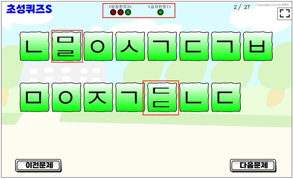 뒷부분은 예전 컴퓨터용 초성퀴즈 만드는 방법이라 여기에서는 필요가 없다.