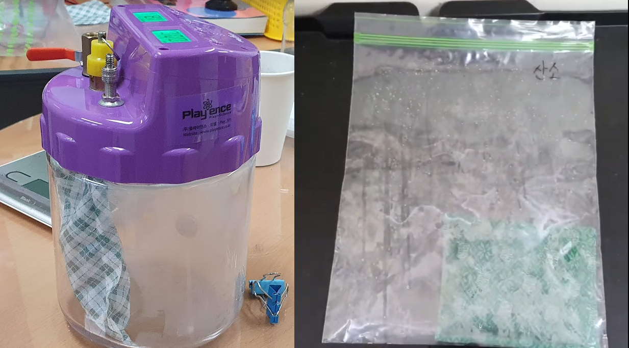 1. 산소가 사용된다는 걸 알아보는 지퍼팩 실험 산소가 줄어드는 걸 확인하고 싶어서 지퍼팩에 공기를 가득 채우고, 핫팩을 넣어 지퍼팩 부피변화를 관찰해 보았다. 어느정도 부피가 줄어드는