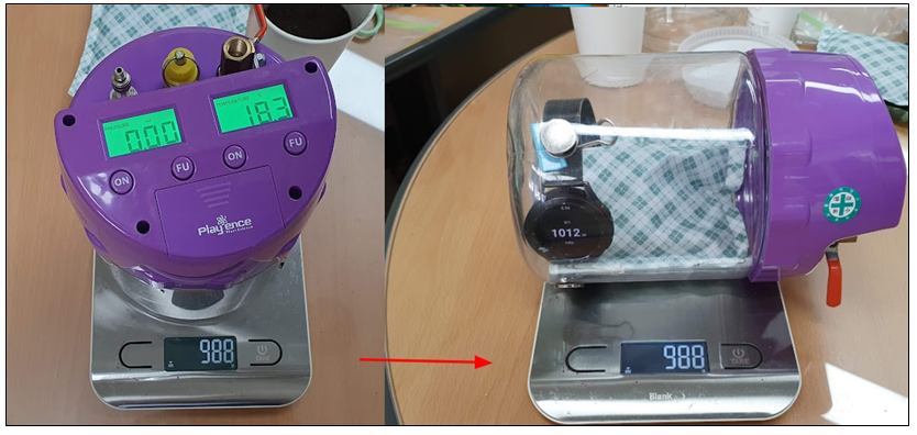(안에 든 시계는 압력변화를 측정하고 싶어서 넣어 두었던 갤럭시워치다. 압력변화 측정은 실패했다.)