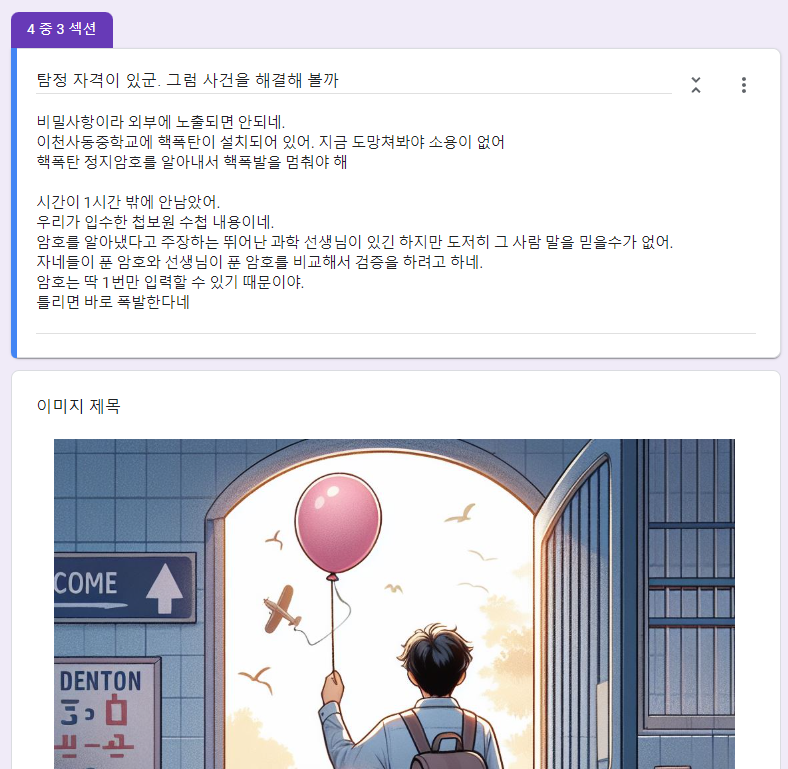 구글설문지 이용 방탈출 게임 시즌 3(탐정버전) – 초간단 1차시 버전 + 피드백 방법