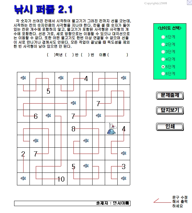 낚시 퍼즐2.0 입니다. 낚시 퍼즐 만들기 프로그램이구요. 난이도 조절이 가능합니다.