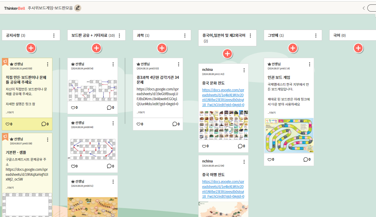 보드판 뿐만 아니라 보드판과 관련된 문제 구글스프레드시트도 함께 공유해 주면 좋겠다.