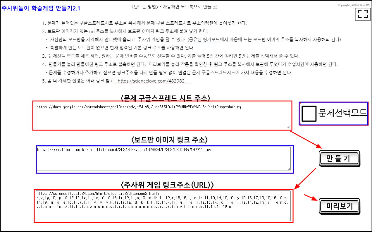 4. 만들기를 눌러 링크주소를 만들고, 미리보기를 눌러 게임에 참여하면 된다.