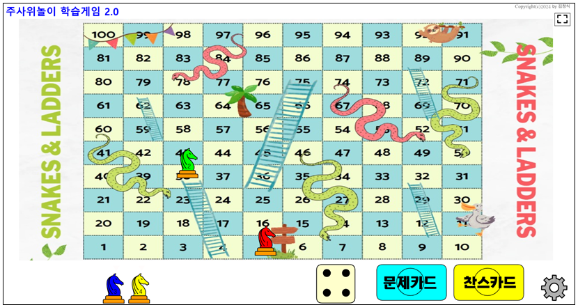학습요소를 추가하려면 사전에 미리 약속하고 사다리나 뱀 꼬리에 도착했을 때만 문제카드를 넘겨 출제된 문제를 풀게 하면 된다.