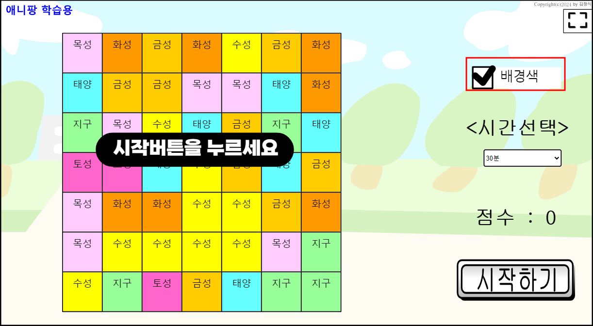- 익숙해 지면, 배경색 체크를 해제해서 색이 아니라 글자만 보고 도전하게 해 보자.