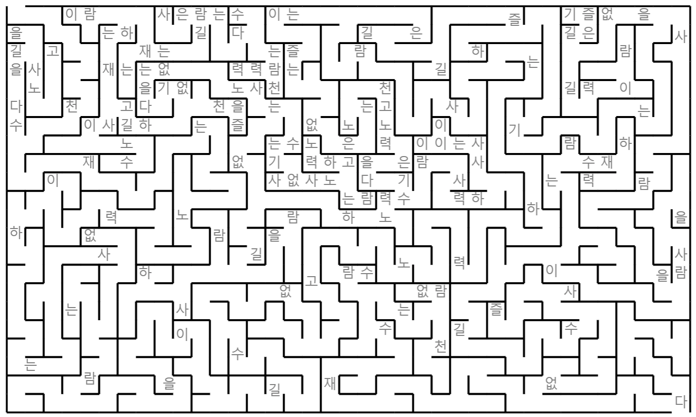 미로를 풀고 미로 경로를 따라서 나열된 글자들을 연결하면 문장이 만들어 진다.