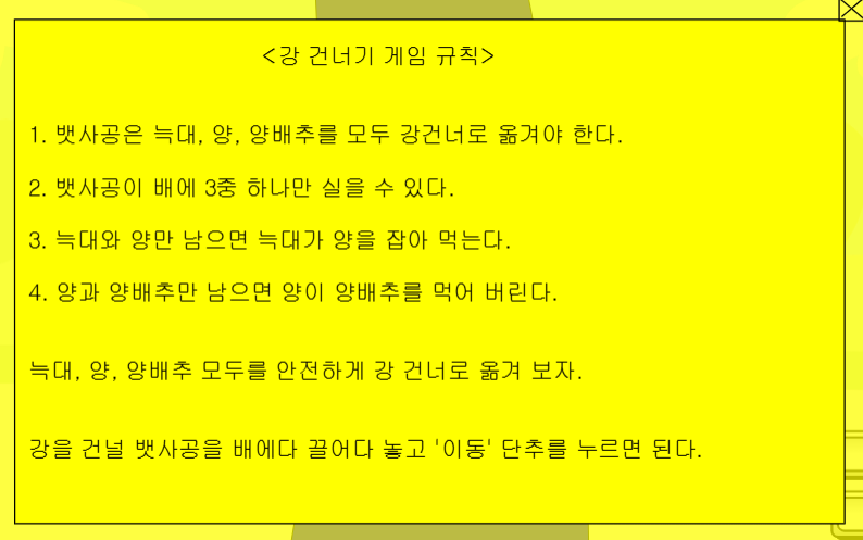 1. 강건너기 게임1 (뱃사공, 늑대, 양, 양배추)