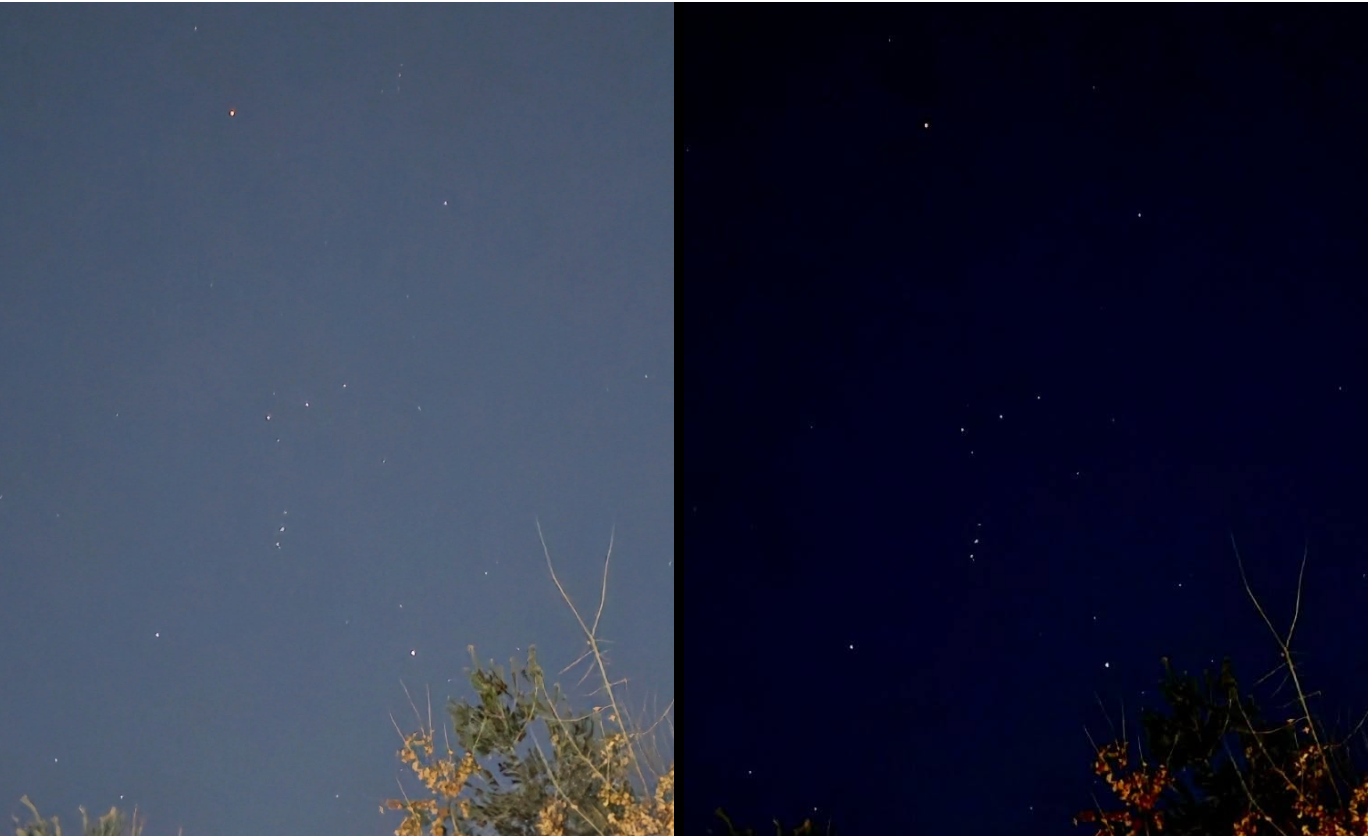야간 모드에서 노출을 자동으로 알아서 준다. 그런데 손이 떨려도 피사체를 놓치지 않고 잘 촬영해 주기 때문에 별자리도 생각보다 잘 촬영된다.