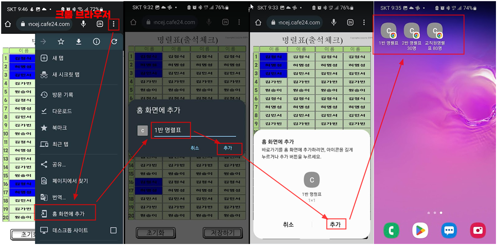다음 시간 수업이 궁금할 때 스마트폰에 홈화면에 바로가기를 만들어 두고 바로 실행하면 확인이 가능하다.