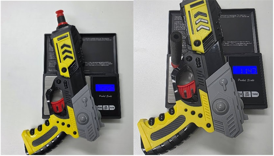 질량보존 법칙을 쉽게 설명하기 위해 다트총을 준비했다.