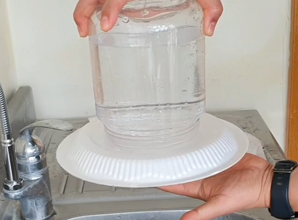 컵을 뒤집어도 쏟아지지 않는 물(대기압) - 첫번째 실험