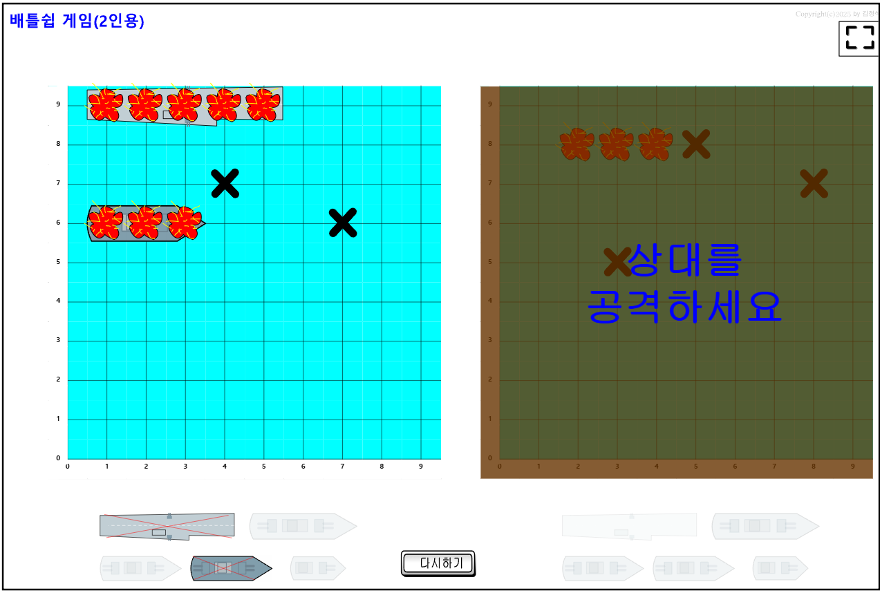 공격에 성공하면 아래쪽에 파괴된 배의 모양이 나타난다.
