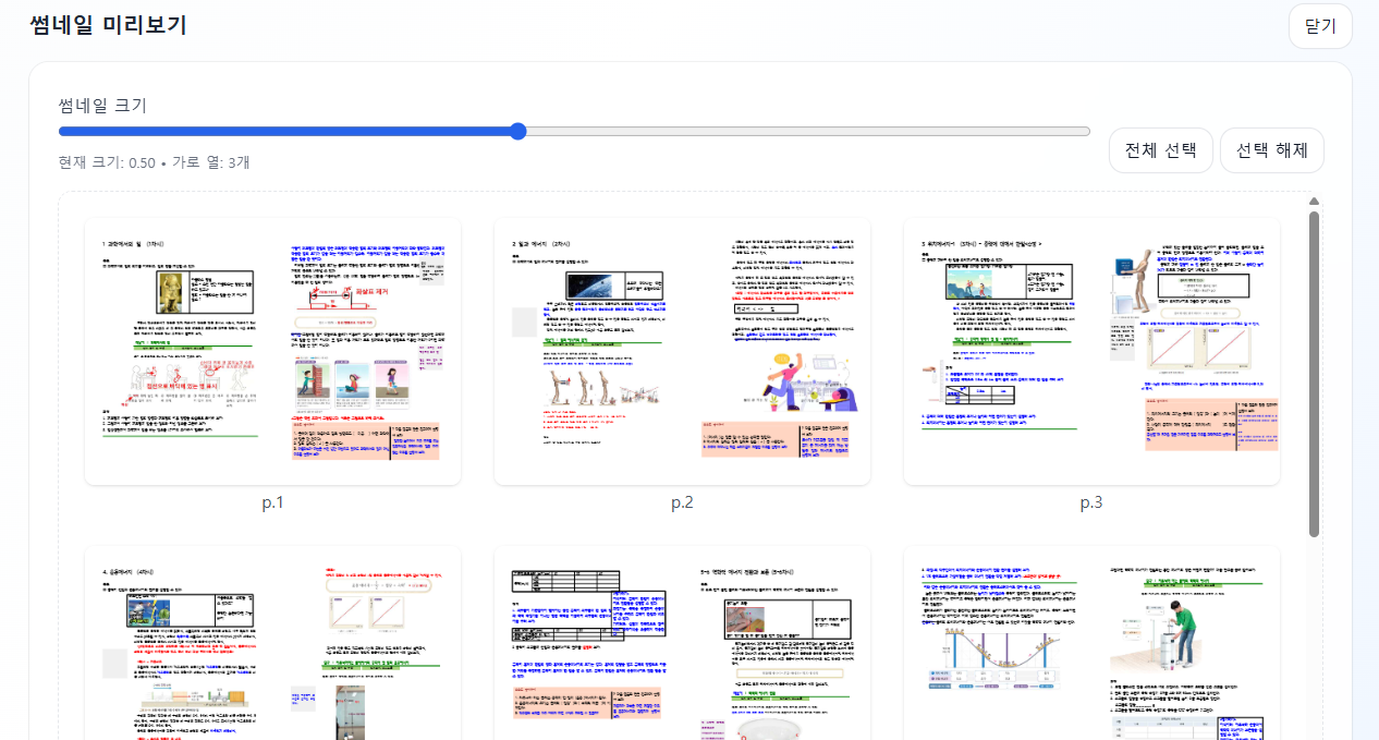 그래서 다른 기능 다 빼고, 분할해서 원하는 페이지들만 부분 저장할 수 있는 기능과, 용량을 줄이는 기능만 넣어서 만들어 보았습니다.