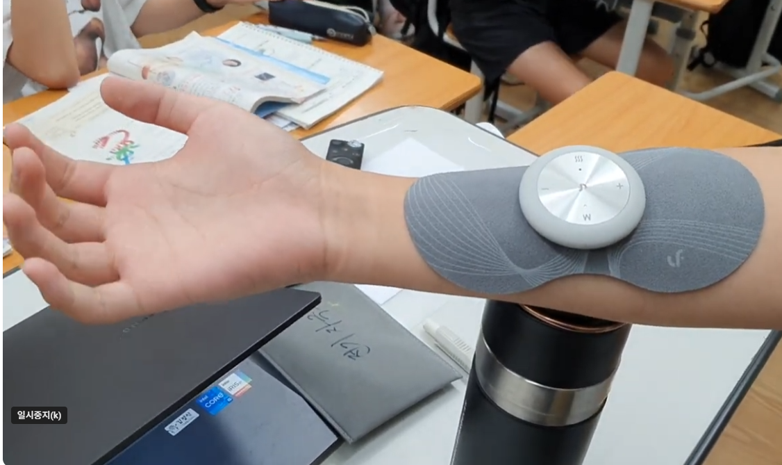 시중에서 판매하는 전기 마사지기를 이용해서 팔뚝에 붙이면 근육에 전기신호를 줘서 내 의지와 상관 없이 근육이 움직이는 걸 볼 수 있다.