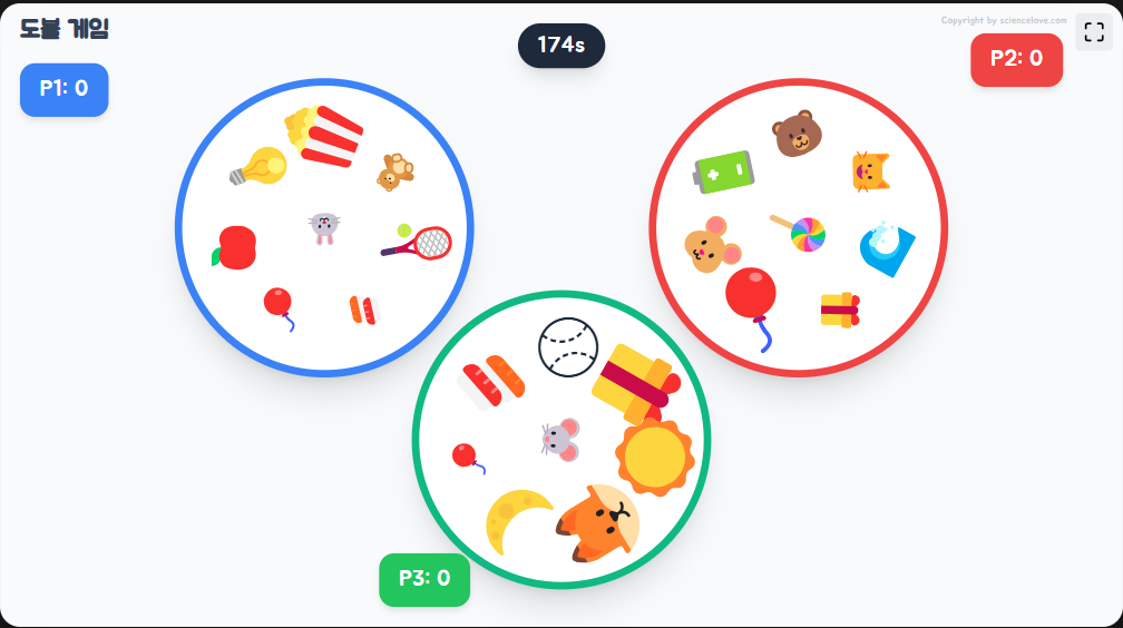 교실에서 학생들이 도블 게임을 재미있게 하는 모습을 보고 온라인용 프로그램을 만들어 보았다.