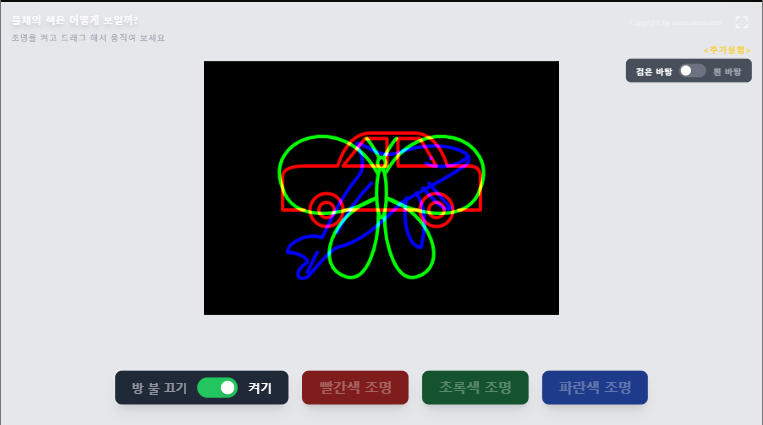 9. 교과서 110 페이지 (해보기) 조명에 따른 물체의 색 관찰하기