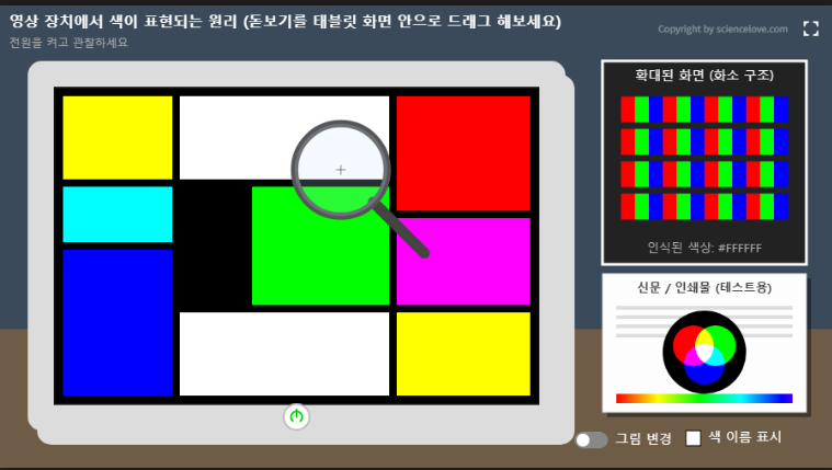 10. 교과서 112 페이지 (해보기) 영상장치에서 색이 표현되는 원리 알아보기