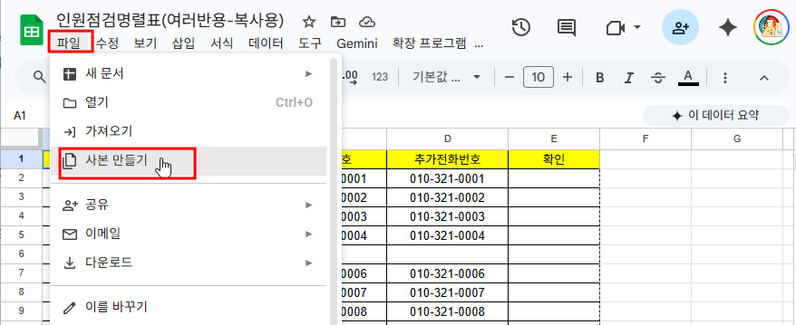 1. 아래 구글스프레드시트에 접속해서 사본 복사해 간다.