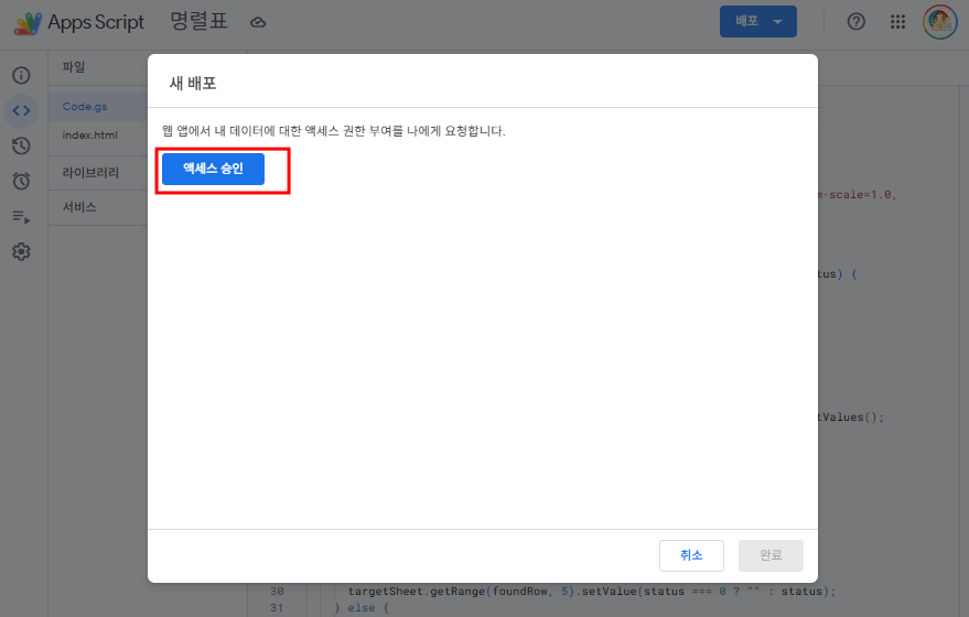 - 보안 때문에 엑세스 승인을 요청한다. 엑세스 승인해 주면 된다.