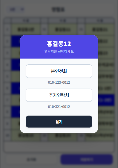이름을 2초간 누르고 있으면 전화걸기 창이 생겨 전화를 걸 수 있다. 필요하면 해당 학생에게 전화를 걸면 된다.